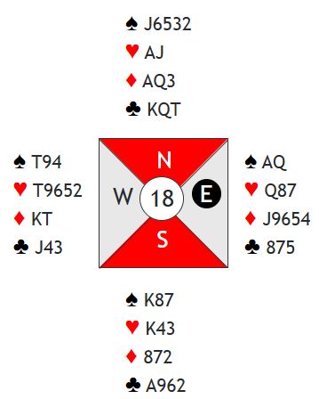 Vi tar med et spill fra mesterskapet, og det illustrerer godt hvor lite som skal til i parturnering for å ende opp med et dårlig spill i stedet for å få en gladscore på spillet. Du kan selv prøve deg som spillefører: