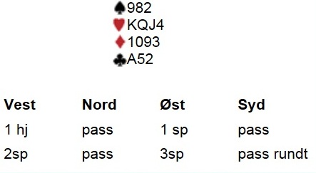 Du sitter sør med følgende blader og skal finne beste utspill etter at motparten har havna i 3 spar. Hva spiller du ut?