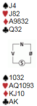 Elevene har forlatt skolegården for sommeren, og dermed byr anledning seg for mer bridgespilling. Selv om klubbspilling er å foretrekke, byr internett på gode alternativer for den bridgehungrige. Små turneringer på bridgenettstedet BBO er fin avkobling når regnet dusker ute, og fredagskvelden fikk jeg lurt med meg en nordøsterdøl opp i følgende gode og hardmeldte (?) slem: