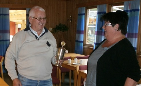 Her mottar Einar Bergeløkken sommerbridgepokalen til odel og eie.