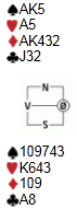 Spar til bordet og ruter til kapp. Det gikk ikke bra. Mer spar til damen og all trumfen unntatt den siste. Nå er stillingen: