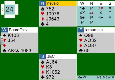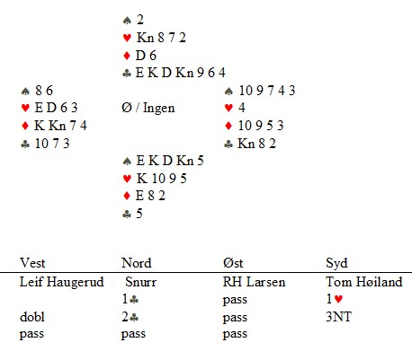 Årets siste og 6 runde av KM er ferdigspilt. I A-pulja hadde jeg tippet 10-10 mellom Sarpborg 1 og Kolbotn BK1. Traff nesten og vårt lag tapte med 2 IMP. Her var det spesielt et spill som tapte kampen. Våre hadde fått en nydelig 3 hjerter X med 4 beit og 1100 inn. Våre på det andre bordet spilte motspill mot 1 NTXX og de fikk 10 stikk og 1950 ut. Det var nesten 30 IMP i sving.Uff da. Det er så jevnt bak suverene Fredrikstad. SKi 2 gikk fra nedrykksplass til medalje, Ski 1 fra 9 plass til 4 plass, og Askim 1 fra medlaje til nedrykk.Vi kan fortsatt få medlaje, men også rykke ned.