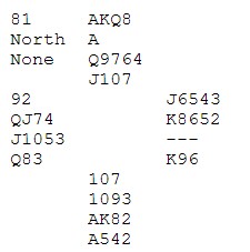 Han stjal en kløver og spilte en liten spar mot bordets tier. Øst stakk med damen og fortsatte med kløverti slik at nord ble låst på hånda i nord. Nå var det ikke mulig å komme inn i bordet for å ta sparkappen.