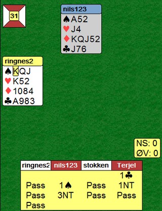 At noen som spiller aktiv bridge ikke gidder å lære seg et skikkelig system er jo deres egen feil. Spiller du på det nivået dere spiller på, så må man kunne forvente mer på systemkortet enn Midsem. Svaret på å utvikle seg som bridgespiller er neppe å takke nei til utvikling i meldesystemer. Åpning 2nt som viser 20-21 er jo en svakhet i et system. Jeg syns løsningen til boa er bra.