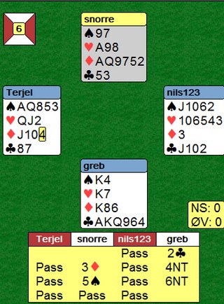 Den som har lengden, har også oftest et manglende kort, så derfor spilte Nils seg inn i bordet og seilte kløverknekten direkte.