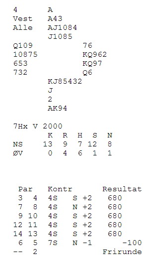 Helge startet med kløver og da var det 300 fine inn på ØV. 4sp kan vel vinnes selv med kløverstjelinga, men to dobla beit var alle poengene.