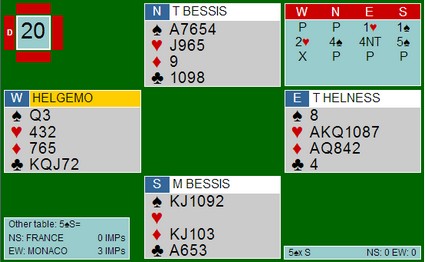 * Og der viser det seg at noe ureglementert har skjedd. Spillet er justert til 4 hjerter minus seks for Østerrike og Norge får 12 imp til! |