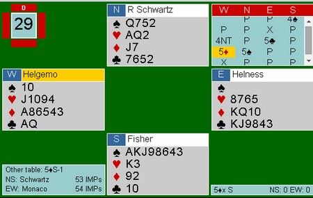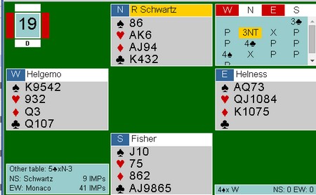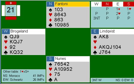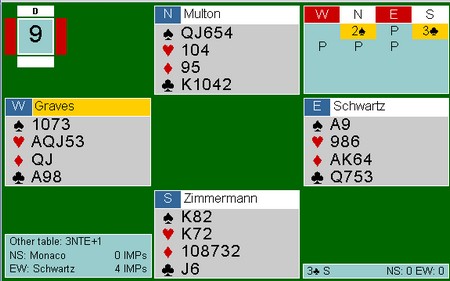 På det andre bordet meldte Graves - Schwatz "bedre" og oppdaga at de ikke hadde sparkontroll. De stoppa i 5ru, men tapte ufortjent 12 IMP.