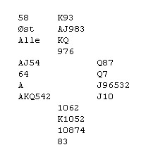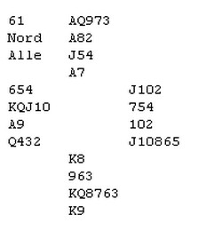 (Joda, mange steder ble det åpnet med 1NT i nord og da gikk det 3NT i syd på direkten)