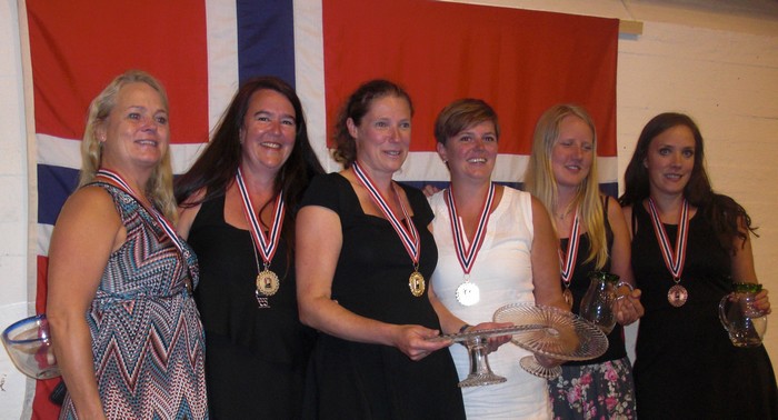 Pallen i NM damer med fv. Åse Langeland,. Kristine Brevik, Maja Rom Anjer, Pernille Lindaas, Liv Marit Grude og Bodil Nyheim Øigarden.