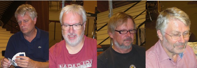 Her er enda en gjeng som lader opp til dagens bridge. Jeg kjenner ikke alle på bildet, men i midten er i alle fall en av Norges beste spillere gjennom tidene, Harald Nordby.