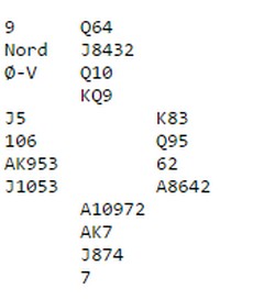 Nå spilte Steffen hjerter fem og Boye måtte ut å gjette. Ikke unaturlig valgte han å stikke og håpe at kløveresset satt i øst sammen med dobbel hjerter. (Bordet har passet på å ha inntak på sparsekseren)