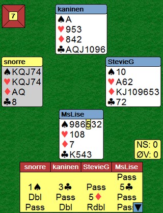 Dagens spill er ett slikt ett og er på ingen måte lett å se hvordan man skal gjennomføre. Det var Liv Bugge som gjorde meg oppmerksom på at Tor og Christian Bakke hadde sett en spilleføring av kontrakten 3 hjerter der man kunne vinne 10 stikk uten å ta for ett ess de fleste av oss ikke ville nølt med å ta for. Det hører riktignok med til historien at man også kan få 10 stikk selv om man tar for esset, men det får Christian fortelle oss om hvis han ønsker for vi tar her for oss den stilige historien der vi ikke tar for esset.