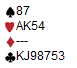 Tar du hj A i 2. stikk ser du at N saker liten spar. Nå har du to muligheter for bare en taper i minor, men taperen i spar må jo også håndteres. Velger du ruter til bordet i 3. stikk vil S stikke din honør og spille spar. Hva så? Prøver du å stjele opp den siste sparen eller satser du på at kl K er i nord?