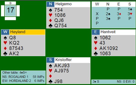 Terje Lie og Møre&Romsdal ledet de fleste rundene, men måtte bite i gresset i den aller siste sesjonen. 41-11 til Hauge på de siste 12 spillene var mer enn nok til seier. Sølv til Terje LIe med en score som hadde holdt til seier mange tidligere år. Bergen med Charlsen, Hoftaniska, Erik Berg og Steffen F Simonsen tok den siste medaljen.