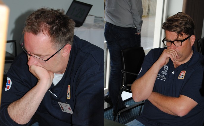 I spill 28 er han flink enda en gang i 3hj og får to stikk mer enn svensken i 3hj. Ni til Norge og to sonebeit på det andre bordet. En åtte til Norge og stillingen er 37 - 26 med et spill igjen. Det ender uavgjort og et knepent tap til Norge. En stund så det mørkt ut, men vi redda til corner.