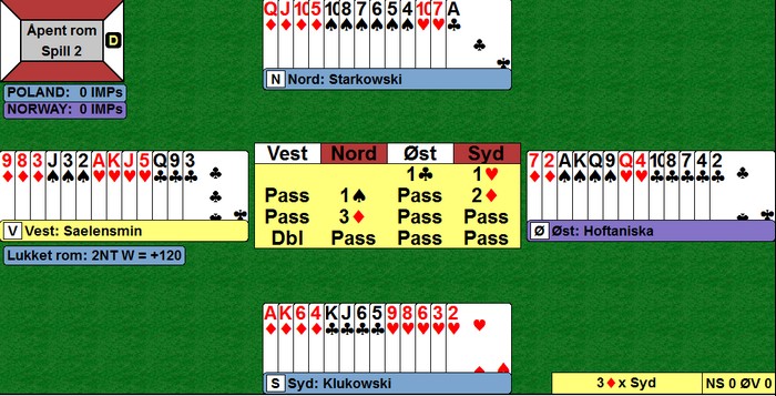 I dag, onsdag, har tre sterke norske par spilt en slags landskamp mot noen av de beste polakkene. Norge stilte med: