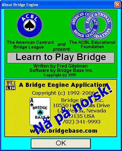 Lær å spille bridge er et interaktivt opplæringsprogram for selvstudium, som du kan laste ned og installere på din egen datamaskin.
