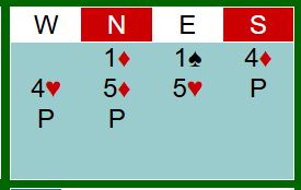 Meldingsforløpene vil naturlig nok bli forskjellige rundt omkring etter at øst åpner med 1 spar. En konvensjon noen av deltakerne kanskje har lært, eller i alle fall hørt om er «Uvanlig grand i forsvar». Det er et hopp til 2NT over motpartens åpning 1 hjerter eller 1 spar. Et slikt hopp til 2NT viser ifølge den konvensjonen begge minor, minst 5-5 i de to fargene. Da bør nord øyne muligheten for en billig stamp siden N/S er i gunstig sone, dvs. eventuelle doblede beter vil bli billigere enn om man hadde vært i faresonen.