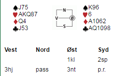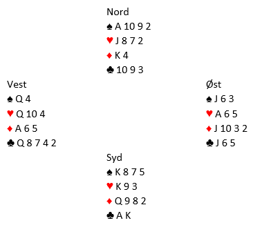 Nå fridde spillefører seg med hjerter. VOILA!
