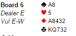 Etter et tidligere innlegg hvor jeg la meg flat og innrømte at egen spilling ikke var på topp i Gold Coast Teams semifinalen i helgen er det kanskje lov å fortelle et ganske fint spill. Riktignok vil sikkert mange kritisere meg der også, i meldingene. Mitt valg av melding, hvor et annet valg ville ført til en bedre score, var kanskje direkte feil? Døm selv...