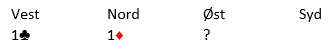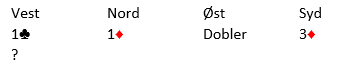 La meg eksemplifisere problemet som kan oppstå, men som løses greit ved at svarhånden i denne meldesituasjonen viser begge sine majorfarger med en melding -  dobler. (eksempelet er fra en turnering forleden)