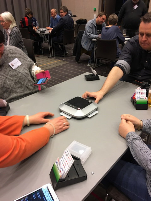 Men på 4 NT kunne jeg svare 5 hjerter (2 av 5 ess uten hjerter dame) og Geir fortsette med 5 NT (storeslems invitt, spørsmål etter konger- jeg trodde vi hadde bestemt å vise laveste ekte konge) og jeg svarte 6 hjerter. Næss satt med 3 konger og var desorientert og hva siste svar visste. Etter gammel praksiss viser det 3 konger, men etter moderne de fleste er gått over til benekter det konge i kløver og ruter men kan ha i hjerter eller i spar. Da Geir valgte å avslutte med 7 hjerter var det innertier, for den kontrakten var ubetelig. 7 grand står også men han kunne ikke vite om en 6- korts sidefarge med ypperlig tilpasning. To andre par meldte lilleslem, 6 NT og 6 hjerter.
