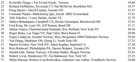 Noen vant 6 spar, og noen få, bla. den unge australeren Justin Mill vant 6 grand uten favørutspill i hjerter eller kløver.
