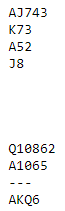 I dette spillet fra første sesjon hadde N/S morsomme kort.