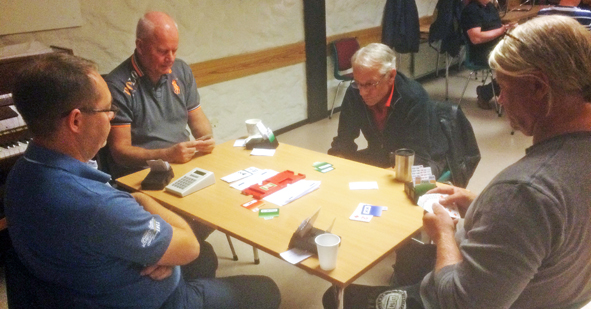 Kåre og Jørn med overlegen siger måndag 28. august. Her frå sisterunden mot Stig og Stein Ole som blei nummer fire.