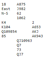Jeg kjenner ikke det polske parets metoder, men jeg tror ikke det var metodene det var noe galt med her, heller valget av åpningsmelding. Kanskje var øst påvirket av forrige spill, for jeg har blitt fortalt at han virket irritert på makkeren som minutter før hadde spilt dårlig i en utgang og gått bet. Klassisk "følge-egg", altså, det er sannsynlig at han satt der og var irritert på makker, så åpna han bare "auto" med 1 spar før han så hvor sterk han var.