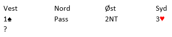 Man kan jo som vest passe over 3 hjerter, for det blir krav (øst har krevd til utgang).