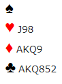 Å spille ut hjerter er dog ikke helt opplagt selv om det er et godt alternativ. Med litt her og der er spar 9 et alternativ - et passivt utspill, og noen velger selvsagt å spille ut ruter. Med begge de utspillene blir det elleve stikk om ikke spillefører bommer kløveren.
