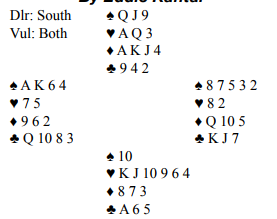 Vi sakser et spill fra bulletinen. Det er skrevet av en av mine favorittskribenter, Eddie Kantar, og denne gangen er kanskje ikke spillet så vanskelig? Prøv deg selv som syd: