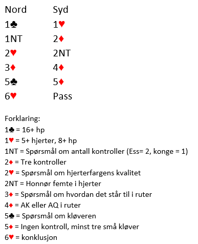 Allerede da nord fikk vite om syd sin ruterbeholdning visste han at 6 hjerter måtte være en brukbar slem, spesielt med syd som spillefører slik at spar konge var beskyttet i utspillet. 6 hjerter ble meldt med tannlegepresisjon!