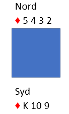 Liten til nieren (eller tieren) ryker som regel til knekten eller damen. Hvis en senere går over til nord og spiller liten til tieren lykkes det om øst fra start satt med ENTEN knekten eller damen. Å spille på ett av to kort hos øst (damen eller knekten) heller enn satse på ett bestemt kort hos øst gir mye bedre sjanse (ett av to kort en bestemt plass gir ca. 75% sjanse). Så dobbelfinessen er klart beste sjanse her. I tillegg til enten knekten eller damen hos øst vinnes også med både dame og knekt hos øst (det hjelper ikke han å legge i en stor en første gangen, det hjelper bare spillefører til å unngå to rutertapere uten noe som helst valg).
