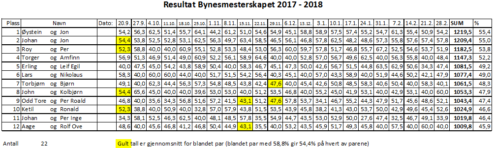 I kveld var Ola og Kjell Jostein best, og vant dermed også klubbmesterskapet sammenlagt.