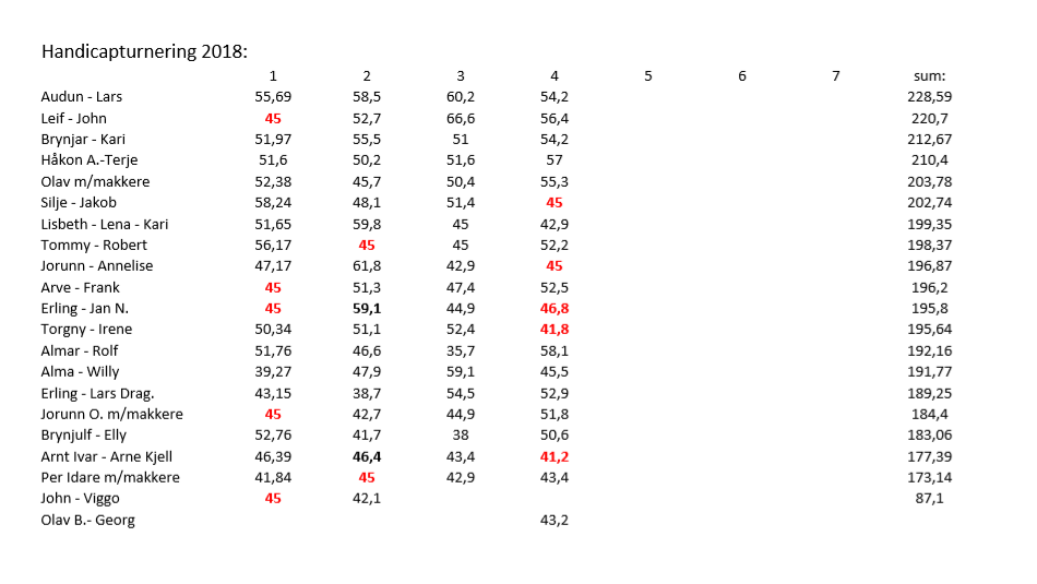 Handikapturnering 2018, 4.kveld