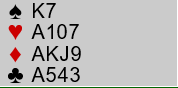 1 ru- 1 sp/ 3 hj (siden 2 hjerter som revers ville være krav er 3 hj splinter, renons eller singelton og god støtte i spar, 4+)- 4 kl (1. eller 2. kontroll) / 4 ru (1. eller 2. kontroll)- 4 spar (Mulig stopp , ikke A i hjerter.