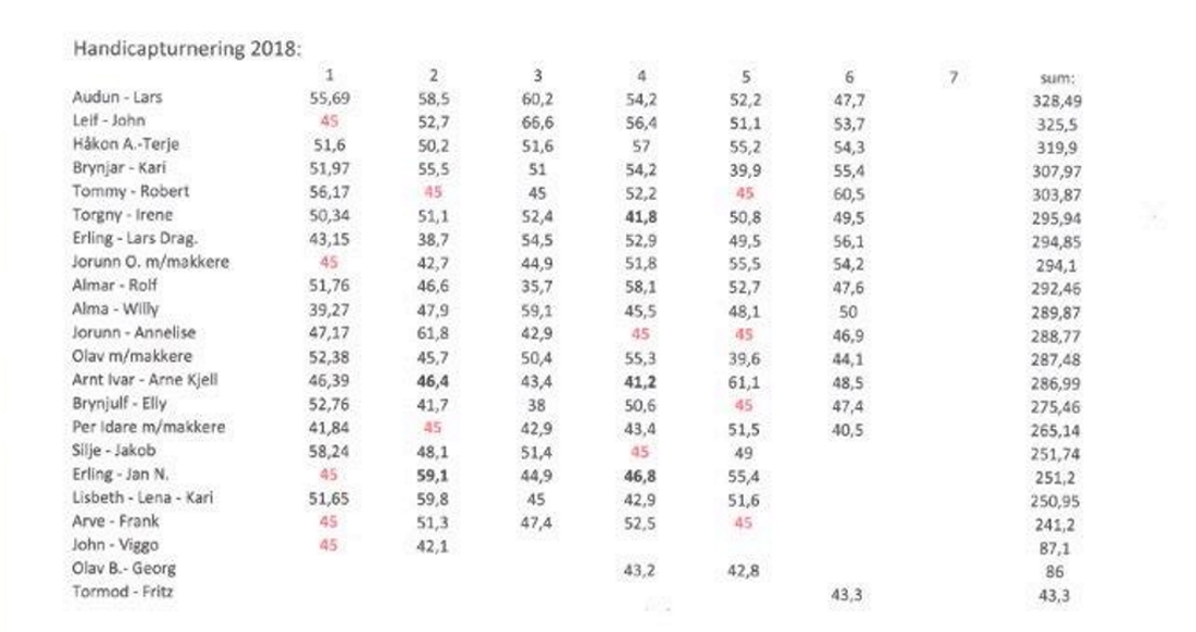 Anders Johansson og Tor Anders Hauge vann med god margin spelinga måndag 30. april. 60% blank stoppa dei på, medan Anne Merete Heggland - Torhild Rasmussen blei nummer to med 53,1%. Tredjeplassen gjekk til Jørn Rekkum - Kåre Kristiansen med 48,8%.