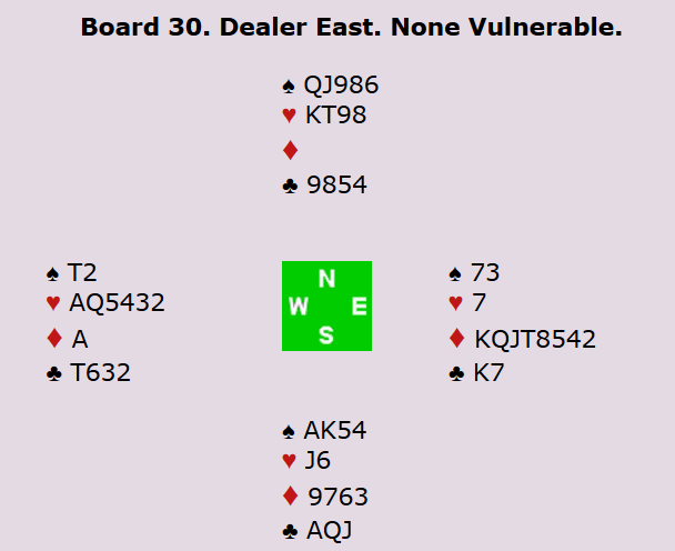 Ved tre andre bord av 32 bord i åpen klasse valgte øst å spille ut kløver bare for å være nødt til å notere -1430. Jeg føler i alle fall med dem...