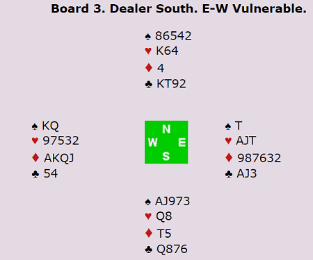 I neste spill fikk vi se et klassisk eksempel på at lilleslem i minor av og til kan være en bedre kontrakt enn 3 grand: