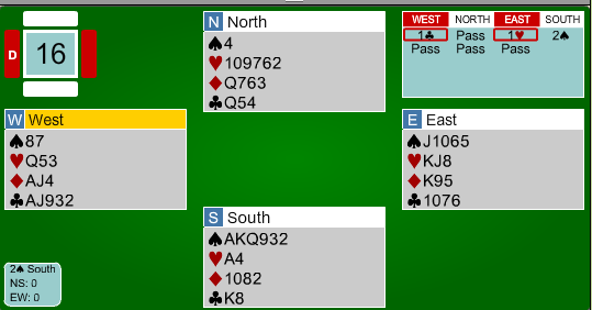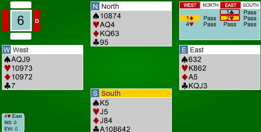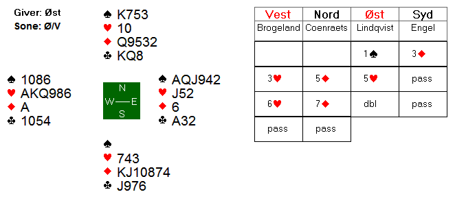 I neste spill hadde utgang i spar gode sjanser på 5-2-tilpasning: