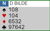 Dennis sin aksjon fungerte best denne gangen. Over uttaket i 2 kløver meldte Blakset 2 spar som han fikk spille. Det endte med åtte stikk da han fikk tak i fire sparstikk (trumf ut), tre ruterstikk og kløver ess, Danmark +110.