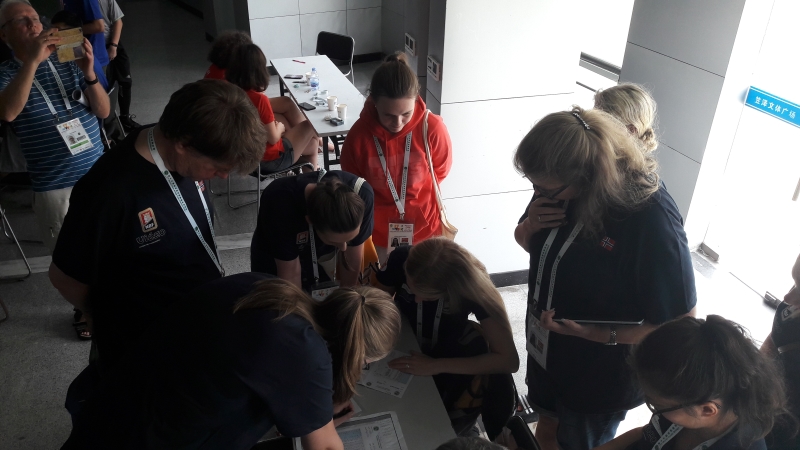 Onsdagens spilling er i gang her i Wujiang. Jentelaget er i gang med sin kvartfinale mot Nederland, mens U16-laget spiller plasseringskamp om syvendeplassen. U21-laget er i gang med Board-a-match-turnering som går over tre dager.
