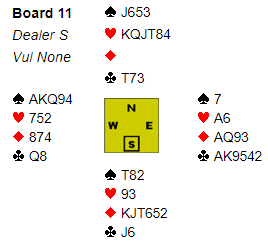 Siden både utspillet, og så motspillet med østs kort må være helt eksakt er det ikke rart at der det ble spilt kløverkontrakt fikk de aller fleste tolv stikk, flere i 6 kløver doblet, og noen fikk elleve stikk i 5 kløver, flere av dem doblet.