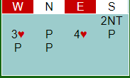 Etter Pattersons sperremelding i kløver sperret Hallberg så høyt han kunne, og Ovesen fikk et vanskelig valg. Da det var sannsynlig at Høyland hadde singel (eller renons) i kløver, og han har meldt inn på tre-trinnet i faresonen (ugunstig), mente øst det var god sjanse for slem. Det var det ikke, og da syd doblet ble det en score av den nitriste typen.