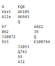 NT og S trenger fire stikk i ruter. N er uten sideinntak. Spill ru 9 og mange V- spillere vil unnlate å bruke knekten.