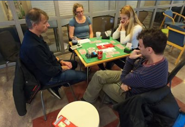 John Helge Herland (t.v.) og Thea Hove Hauge (SOFIES VERDEN) spiller mot Maja Rom Anjer og Odin Svendsen (FSM) i finalen