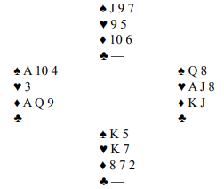 Nå ble en hjerterfinesse tatt, og syd vant for å kunne ta sine to kløverstikk. Forsvaret hadde allerede fire stikk. Dette var igjen: